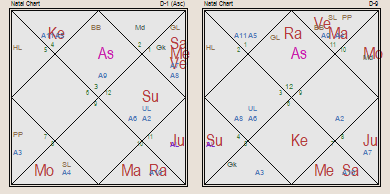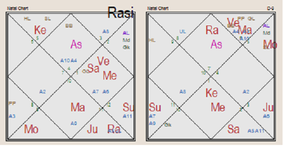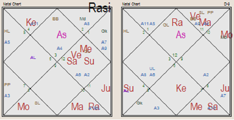 We should try to analyze all the three from his birth chart. Below is given Nirayan Chart and its Bhava chalit chart-