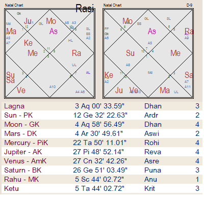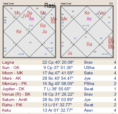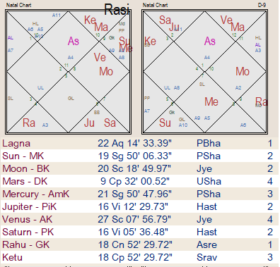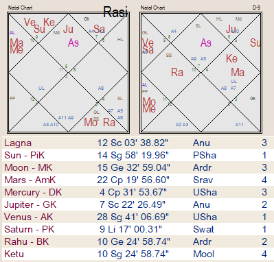 These rape victims were abducted, raped and murdered. Chart is being give to fathom the work of involved planets. Mostly girls were born in Chaturdashi or Amavasya or chaturthi tithi. Parents can be advised and cautioned in advance through birth chart of girls. If in girl’s birth chart Moon and houses concerned are heavily afflicted and a period evil planet is running they should be informed to take precaution. Their Life can be saved for sure. Women going to marry or those who are already married, can also know it in advance. Status of marital rape is inscribed in birth chart, it can be known in advance and precaution can be taken for mental-physical health and well being.
