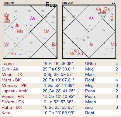 His Jupiter dasha also does not signify poverty as such though it was not very good from monetary point of view. He did some small roles on TV and in small budget movies to get money. Bhushan was an avid reader and had a fine collection of books, which he had to sell off like his cars and bungalows in bad times. He breathed his last in 27 January 1992 in a rented flat.
