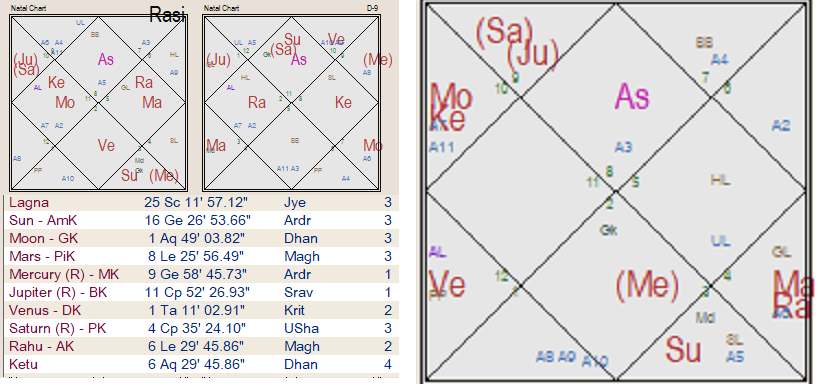 Birth Chart of Diana, Princess of Wales-(Birth time 7:45 PM is taken). Large chart attached with the main chart is chalit chart for the same. Astro Databank’s Tropical chart is with Libra ascendant for the same birth time.