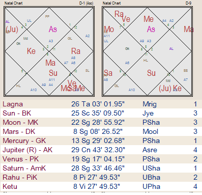 रजनीश 17 नवम्बर 1985 को वे भारत वापस लौट आये. उन्होंने शिष्यों के सामने अमेरिका के खात्मे की भविष्यवाणी भी की और कहा कि ‘अमेरिका एक दानव है’. वापस लौटने के बाद इण्डिया में रजनीश ने मनाली मे 6 महीने बिताये लेकिन बृहस्पति ने चैन से रहने नहीं दिया. उन्हें फिर भागना पड़ा, काठमांडू, ग्रीस, जेनेवा, लन्दन इत्यादि में 2 साल बीते. उन्हें ग्रीस में भी गिरफ्तार किया गया था. जनवरी 1987 में वे पुन: पुणे लौटे और रेगुलर प्रवचन देना शुरू किया. पुणे में ही 1989 में भगवान रजनीश नाम छोड़ कर ‘ओशो’ नाम रख लिया. रजनीश की 58 वर्ष की उम्र में 19 जनवरी 1990 को मृत्यु हो गई, उस समय मारक बृहस्पति की महादशा और सप्तम स्थित चतुर्थेश मारक बने सूर्य की प्रत्यान्तर दशा थी. मृत्यु के समय शनि अष्टम में ट्रांजिट कर रहा था, बृहस्पति दूसरे मारक हॉउस में ट्रांजिट में था और सूर्य उनके षष्टमेश से युत था तथा अपने ही नक्षत्र में ट्रांजिट कर रहा था. उनकी मृत्यु हृदय गति रुकने से हुई यह दशा से बखूबी स्पष्ट है. उनके कम्यून द्वारा जारी एक बयान में कहा गया कि अमेरिकी जेलों में कथित जहर देने के बाद “शरीर में रहना नरक बन गया था” इसलिए उनकी मृत्यु हो गई. यह बुध की अन्तर्दशा में आवश्य दिया गया क्योंकि सूर्य मरण तो इसी से देने वाला था .