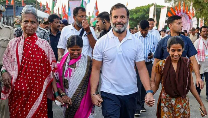 The Bharat Jodo Yatra, which translates to “Unify India March,” was a campaign organized by the Congress party spanning from 2022 to 2023 with the stated primary objective of promoting national unity and solidarity across the various regions of India. It aimed to mobilize support for the INC and its ideology, emphasizing themes of patriotism, cultural heritage, and development. Gandhi started the initiative on 7 September 2022 at Kanyakumari after paying tributes to his late father Rajiv Gandhi, Swami Vivekananda, and the Tamil poet Thiruvalluvar. The yatra saw Gandhi along with INC leaders, including members of Parliament and notable personalities, traveling across the country, addressing rallies, conducting public meetings, and interacting with citizens. Throughout the yatra, Gandhi focused on issues such as economic development, social justice, and inclusive governance, aiming to strengthen the party’s grassroots presence and reinvigorate its political relevance on the national stage.