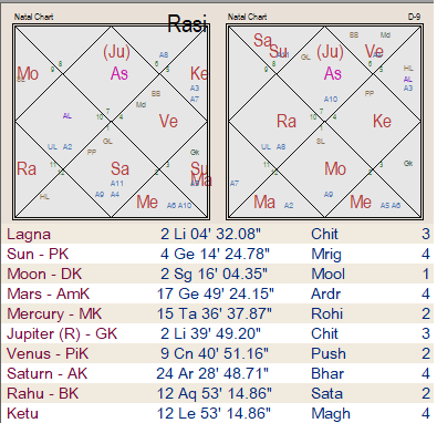 Birth Chart of Rahul Gandhi- Chart is prepared for 19th June 1970, time 14:28 at New Delhi.