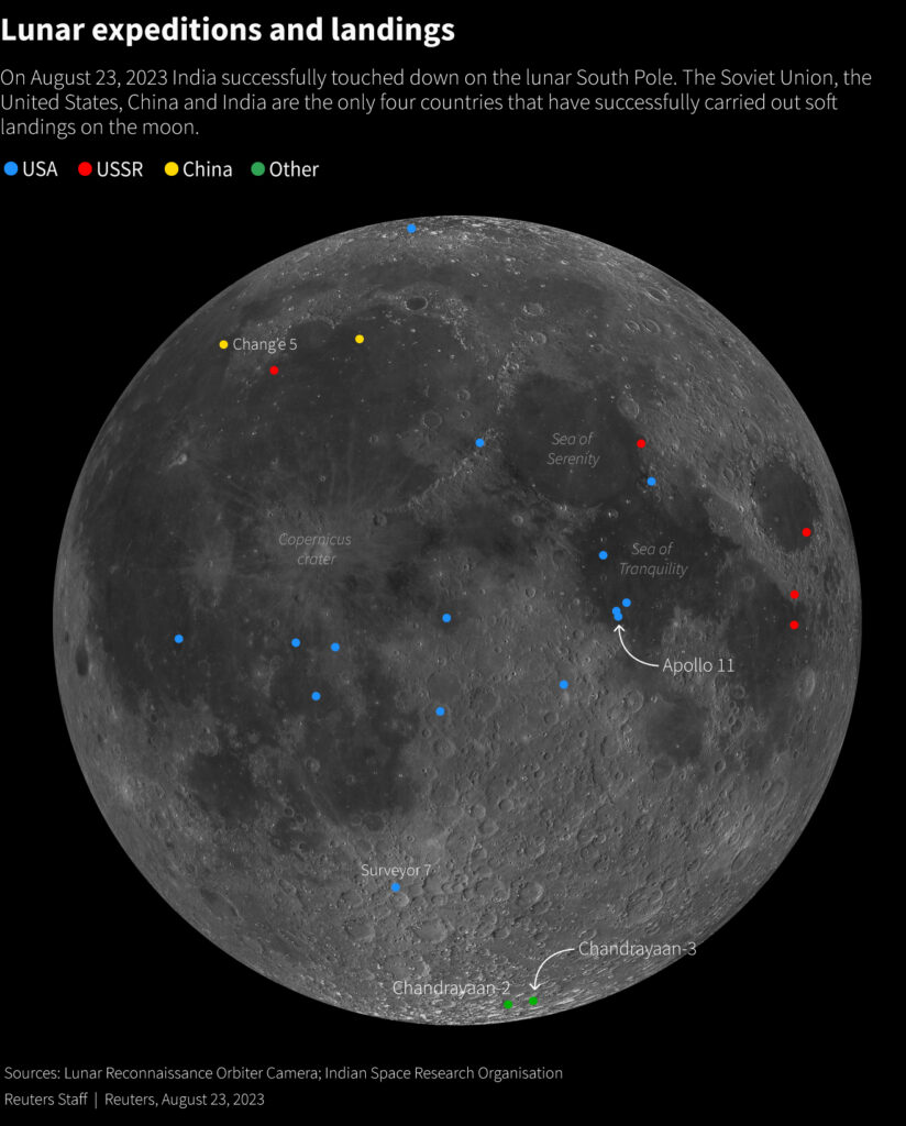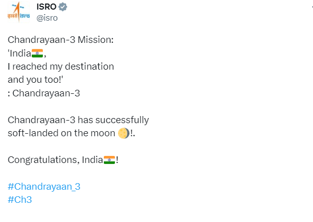 India created history today. Indian spacecraft Chandrayaan-3 landed on the rugged, unexplored south pole of the moon today. It was a mission seen as crucial to lunar exploration and India’s standing as a space power. History is created just days after a similar Russian Russia’s Luna-25 crashed.  It is India’s second attempt to land on the south pole of the moon.