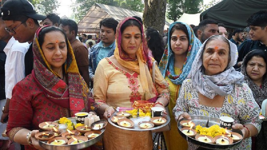 जम्मू-कश्मीर के खीर भवानी मन्दिर में शुक्रवार हजारों की संख्या में भक्तो ने देवी की पूजा अर्चना कर उत्सव मनाया. खीर भवानी, क्षीर भवानी या राज्ञा देवी मंदिर कश्मीर का सबसे प्रसिद्ध मन्दिर है. इस मन्दिर पर कश्मीरी पंडितों की असीम आस्था है. भवानी देवी का यह प्रसिद्ध मंदिर जम्मू और कश्मीर के गान्दरबल ज़िले में तुलमुल गाँव में एक पवित्र सरोवर के ऊपर स्थित है. खीर भवानी मंदिर में ‘ज्येष्ठ अष्टमी के अवसर पर वार्षिक मेला लगता है जिसमे हजारों पंडित शरीक होते हैं. कश्मीरी पंडितों के लिए यह सबसे महत्वपूर्ण उत्सव है. कल शुकवार को पांच हजार से अधिक पंडित कड़ी सुरक्षा के बीच यहाँ पहुंचे. तीन दिवसीय वार्षिक मेले की शुरुआत बहुत भव्यता के साथ हुआ. देश के अन्य हिस्सों और आसपास के गांवों से लोगों ने खीर भवानी या तुलमुल्ला में रागन्या देवी मंदिर में पूजा की. भक्तों ने अनुष्ठान के रूप में मंदिर के पास सैकड़ों दीपक जलाए और रात भर प्रार्थनाओं में भाग लिया.