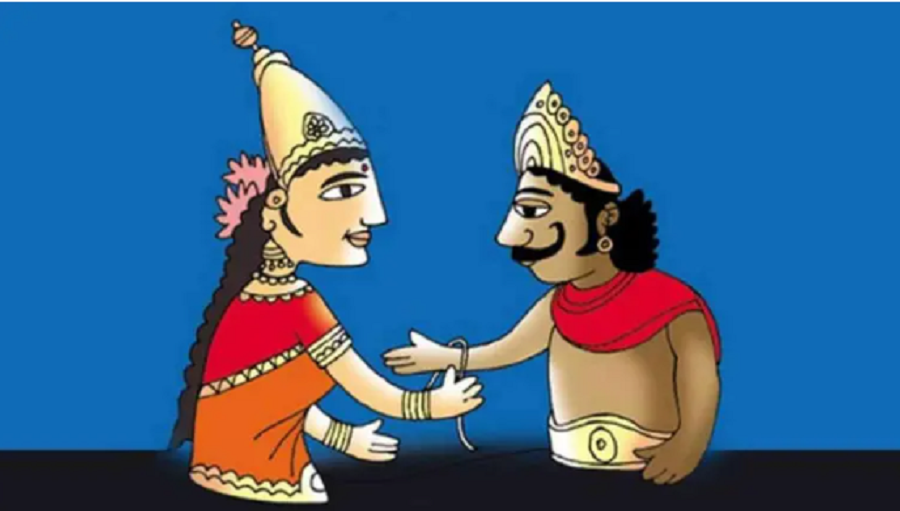 जब ब्राह्मण वेशधारी भगवान विष्णु ने राजा बलि का सब कुछ अपहरण कर लिया तब उन्होंने महादानी बलि से प्रसन्न होकर एक वरदान मांगने को कहा. बलि ने वर मांगते हुए कहा “भगवन मैं जब भी देखूं तो सिर्फ आपको ही देखूं. सोते जागते हर क्षण मैं आपको ही देखना चाहता हूं.” भगवान ने राजा बलि को ये वरदान दे दिया और राजा के साथ पाताल लोक में ही रहने लगे. भगवान विष्णु के राजा के साथ रहने की वजह से माता लक्ष्मी चिंतित हो गईं और नारद जी को सारी बात बताई. तब नारद जी ने माता लक्ष्मी को भगवान विष्णु को वापस लाने का उपाय बताया. नारद जी ने माता लक्ष्मी से कहा कि आप राजा बलि को अपना भाई बना लिजिए और भगवान विष्णु को मांग लिजिए. नारद जी की बात सुनकर माता लक्ष्मी राजा बलि के पास भेष बदलकर गईं और उनके पास जाते ही रोने लगीं. राजा बलि ने जब माता लक्ष्मी से रोने का कारण पूछा तो मां ने कहा कि उनका कोई भाई नहीं है इसलिए वो रो रही हैं. राजा ने मां की बात सुनकर कहा कि आज से मैं आपका भाई हूं. माता लक्ष्मी ने तब राजा बलि को राखी बांधी और उनके भगवान विष्णु को मांग लिया है. ऐसा कहा जाता है कि तभी से रक्षाबंधन का यह पावन पर्व मनाया जाता है.