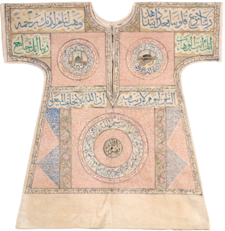 यंत्र कुर्ता जिस पर कुरान के सुरे लिखे हैं.