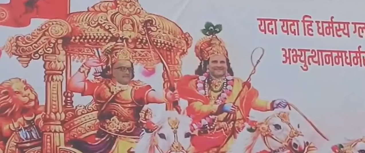 कांग्रेस नेता राहुल गांधी की भारत जोड़ो न्याय यात्रा बुधवार को उन्नाव के रास्ते कानपुर पहुंच गई है. इस बीच कांग्रेस कार्यकर्ताओं का एक पोस्टर शहर में चर्चा का विषय बना हुआ है. पोस्टर को खूब शेयर किया जा रहा है. इस पोस्टर में राहुल गांधी को भगवान श्री कृष्ण तो यूपी प्रदेश अध्यक्ष अजय राय को अर्जुन के अवतार में दिखाया गया है. यह पोस्टर कांग्रेस नेता संदीप शुक्ल की तरफ से लगवाए गए हैं. हिंदुत्व फासिज्म के बुलडोजर राज, अधर्म और भ्रष्टाचार के खिलाफ लड़ाई में राहुल की भारत जोड़ो यात्रा ने देश में मोदी के खिलाफ बड़ा माहौल बना दिया है.