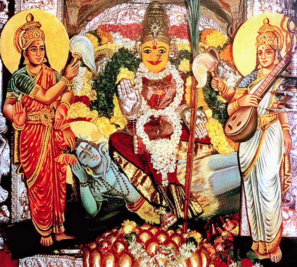 लग्नचामरहस्तश्रीशारदापरिवीजिता ।