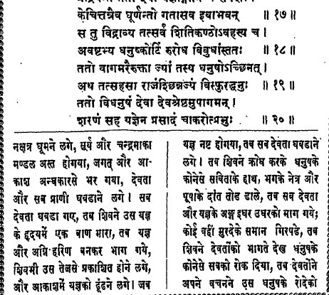 मध्ययुग में लिखे गये पुराणों में पिता दक्षसे अपमानित होनेके कारण देवी सती के अग्निकुंड में प्राण त्याग दिये जाने की कथा है. यह कथा मध्य युग में लिखी गई, महाभारत में बताया गया है कि कोई सती दाह नहीं हुआ था. पुराण गपोड़शंख के अनुसार – सती के यज्ञ में प्राण त्याग देने के बाद शिव ने क्रोधित होकर अपने होठ चबाते हुए, उग्र रूप धारण किया और अपनी एक जटा उखाड़ ली और ज़ोर से गंभीर अट्टहास करते हुए उस जटा को ज़मीन पर पटक दिया. इससे तुरंत ही एक बहुत बड़ा और लंबाचौड़ा पुरुष उत्पन्न हुआ. उसका शरीर इतना विशाल था कि वह स्वर्ग को छू रहा था. उसकी हजार भुजाएँ थीं, उसका रंग बादल की तरह काला था, और उसकी तीन जलती हुई आँखें सूर्य की तरह चमक रही थीं. उसकी भयानक दाढ़ें थीं, और उसके लाल-लाल बाल अग्नि की लपटों की तरह दिख रहे थे. उसके गले में नरमुंडों की माला थी और हाथों में तरह-तरह के अस्त्र-शस्त्र थे. जब उस पुरुष ने हाथ जोड़कर पूछा, “भगवान! मैं क्या करूँ?” तब शिव बोले, “वीर रुद्र! तू मेरा अंश है, इसलिए मेरे पार्षदों का नेता बनकर तुरंत जा और दक्ष और उसके यज्ञ को नष्ट कर दे।” जब भगवान शंकर ने गुस्से में यह आज्ञा दी, तो वीरभद्र ने उनकी परिक्रमा की और यज्ञ स्थल की तरफ गया. उसने यज्ञशाला को तहस-नहस कर दिया—कुछ ने खंभों को तोड़ा और यज्ञ के पात्रों को फोड़ दिया। कुछ ने अग्नियों को बुझा दिया, कुछ ने यज्ञकुंड में पेशाब किया, और कुछ ने मुनियों और स्त्रियों को डराया. वीरभद्र ने दक्ष को कैद कर लिया, और बाकी सेवकों ने ऋषियों और देवताओं को पकड़ लिया. भृगु हवन कर रहे थे, और वीरभद्र ने उनकी दाढ़ी और मूंछें नोंच लीं, क्योंकि उन्होंने प्रजापतियों की सभा में महादेवजी का उपहास किया था. फिर क्रोधित होकर वीरभद्र ने भग देवता को ज़मीन पर पटक दिया और उनकी आँखें निकाल लीं, क्योंकि जब दक्ष महादेवजी को शाप दे रहे थे, तब भग देवता ने उन्हें उकसाया था. इसके बाद वीरभद्र ने पूषा के दांत तोड़ दिए. यजमान दक्ष का सिर धड़ से अलग कर दिया और दक्ष का सिर यज्ञ की अग्नि में डाल दिया और यज्ञशाला में आग लगाकर यज्ञ को नष्ट कर दिया.