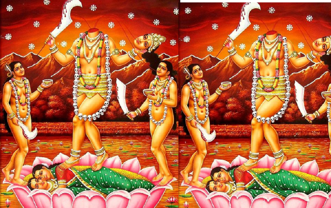 कथा के अनुसार एक बार जब देवी अपनी परिचारिकाओं जया और विजया के साथ मंदाकिनी नदी में स्नान के लिए गईं. स्नान करते समय देवी कामाग्नि से कृष्ण वर्ण की हो गईं. उस समय उनकी दोनों परिचारिकाएँ भूख से व्याकुल हो उठी. वे व्याकुल होकर भोजन की मांग करने लगीं. इसपर माता ने उन्हें धैर्य रखने के लिए कहा परंतु सहचरियां भूख से तड़प रही थी. उनमें धैर्य अब बिल्कुल भी नहीं रह गया था. उन्होंने कहा “माता, प्रार्थना करने पर आप अपने शिशुओं को भोजन अवश्य प्रदान करतीं हैं. हम भूख से व्याकुल हो रहीं हैं, आप हमें भोजन प्रदान करें.” माता ने अपनी सहेलियों का यह हाल देख अपने कराग्र से अपना सिर छेदन कर दिया. जब मां ने अपना सिर काटा तो उनका कटा हुआ उनके बाएं हाथ में आ गिरा और उनके कबंध से तीन धाराएँ निकल पड़ी. दो धाराएँ सहचरी डाकिनी और वर्णिनी के मुख में गिरीं और एक धारा से खुद रक्तपान करने लगीं. देवी का तभी से छिन्नमस्ता नाम पड़ा और इस रूप में देवी की पूजा होने लगी.