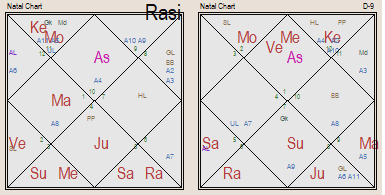 Saturn 7.5 years transit should be judged when it is 45 degree away from Moon degree and sign, not one sign away; its severity starts from this degree. In fact, Saturn starts his sadhesati when it transits 3rd sign from moon aspecting it with his third drishti. His third aspect is very severe and dukh-karak. It is 90 degree squire position which is regarded very tough In western astrology. The 45 degree distance is called Semisquare which is also tough and difficult position and when it is seen with regard to Saturn -the dukkh karak, this is destruction of health and wealth. Saturn’s 14 year is when he reaches just opposite to Moon sign aspecting it with his seventh drishti hence it is also tough position. And when Saturn completes the circle he closes a chapter of life and opens a new one. See this chart-