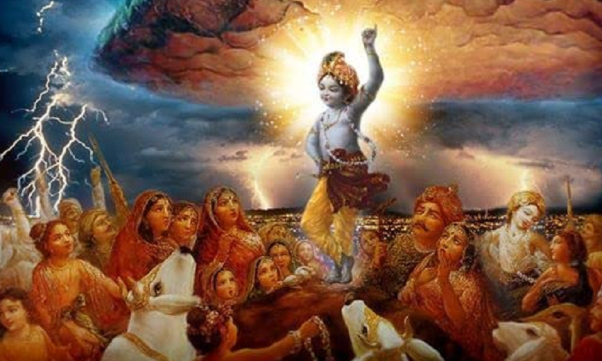 यह समझाकर वे गो और ब्राह्मण पूजन करवाते हैं और फिर गोवर्धन की प्रदक्षिणा करवाते हैं. वो अंत में कहते हैं “ अयं गो ब्रह्मणाद्रीणाम मह्यं च द्यियो मखः” गौ, ब्राह्मण और गोवर्धन को जो प्रिय होगा वही मुझे भी प्रिय होगा. उन्होंने गोवर्धन की परिक्रमा लगवाई अर्थात वह क्षेत्र जहाँ गायों का वर्धन होता है. इस तरह भगवत का यह प्रसंग गाय को केन्द्र में रख कर ही होता है. श्रीकृष्ण का हर कुछ गौ और कृषि से सम्बन्धित है. गोवर्धन धारणकर उन्होंने इन्द्र का मद चूर कर दिया था, मद चूर हो जाने के बाद इन्द्र नें उनसे क्षमा याचना मांगी थी और गौलोक से कामधेनु श्री कृष्ण को बधाई देने के लिए ब्रज आई थी. इस प्रसंग में सुरभि की यह कृष्ण वंदना गौरतलब है :